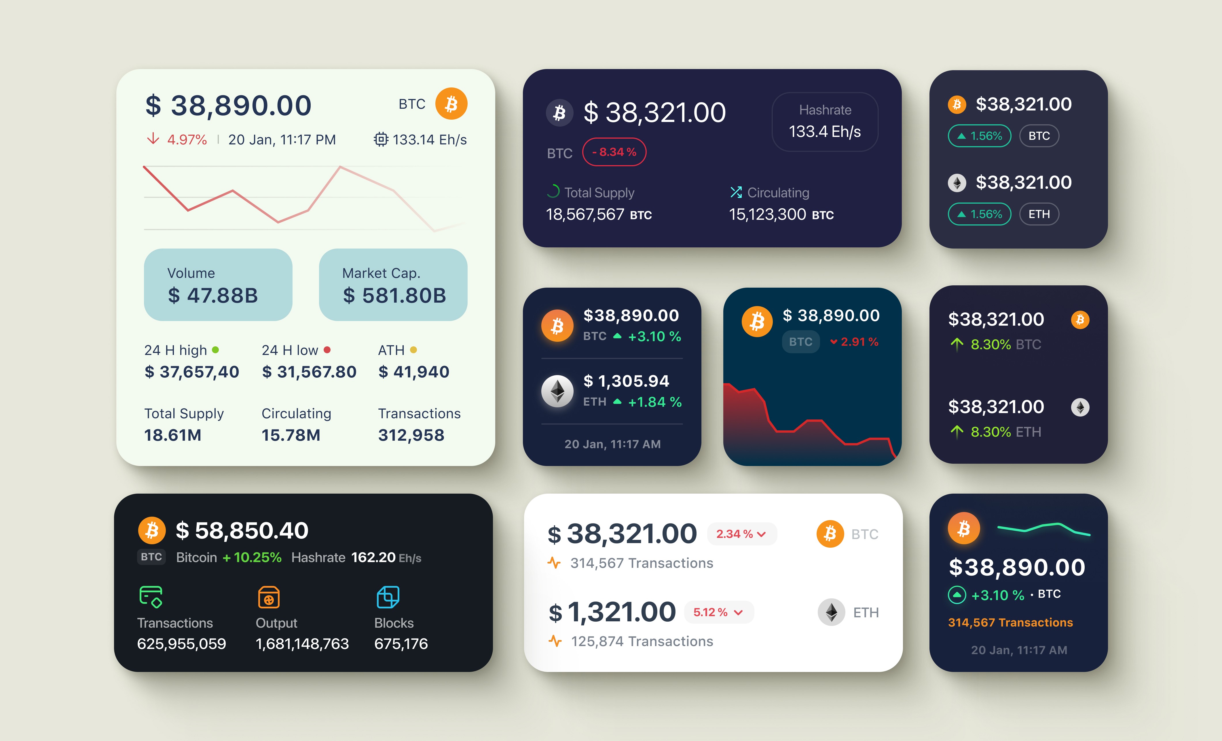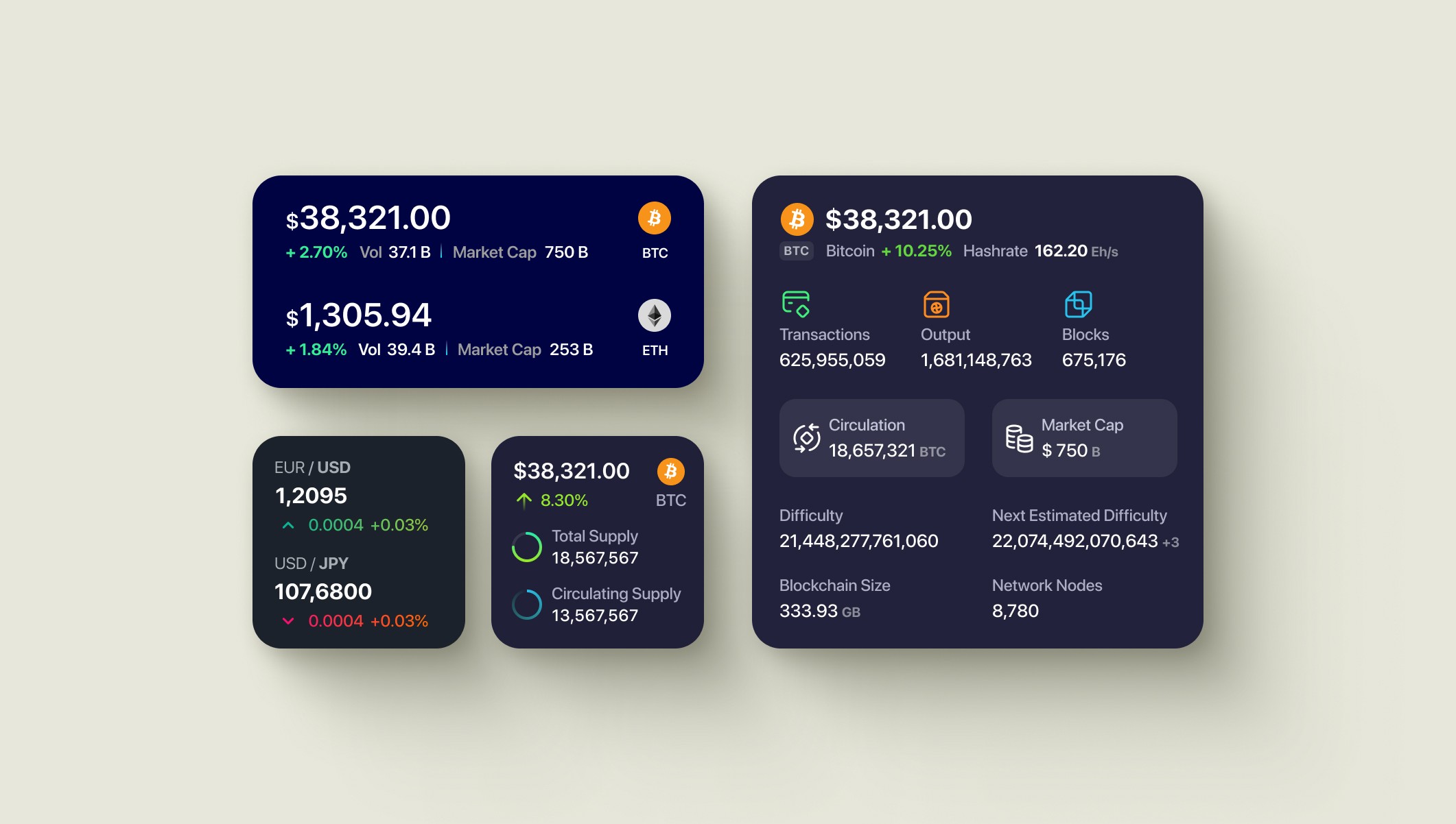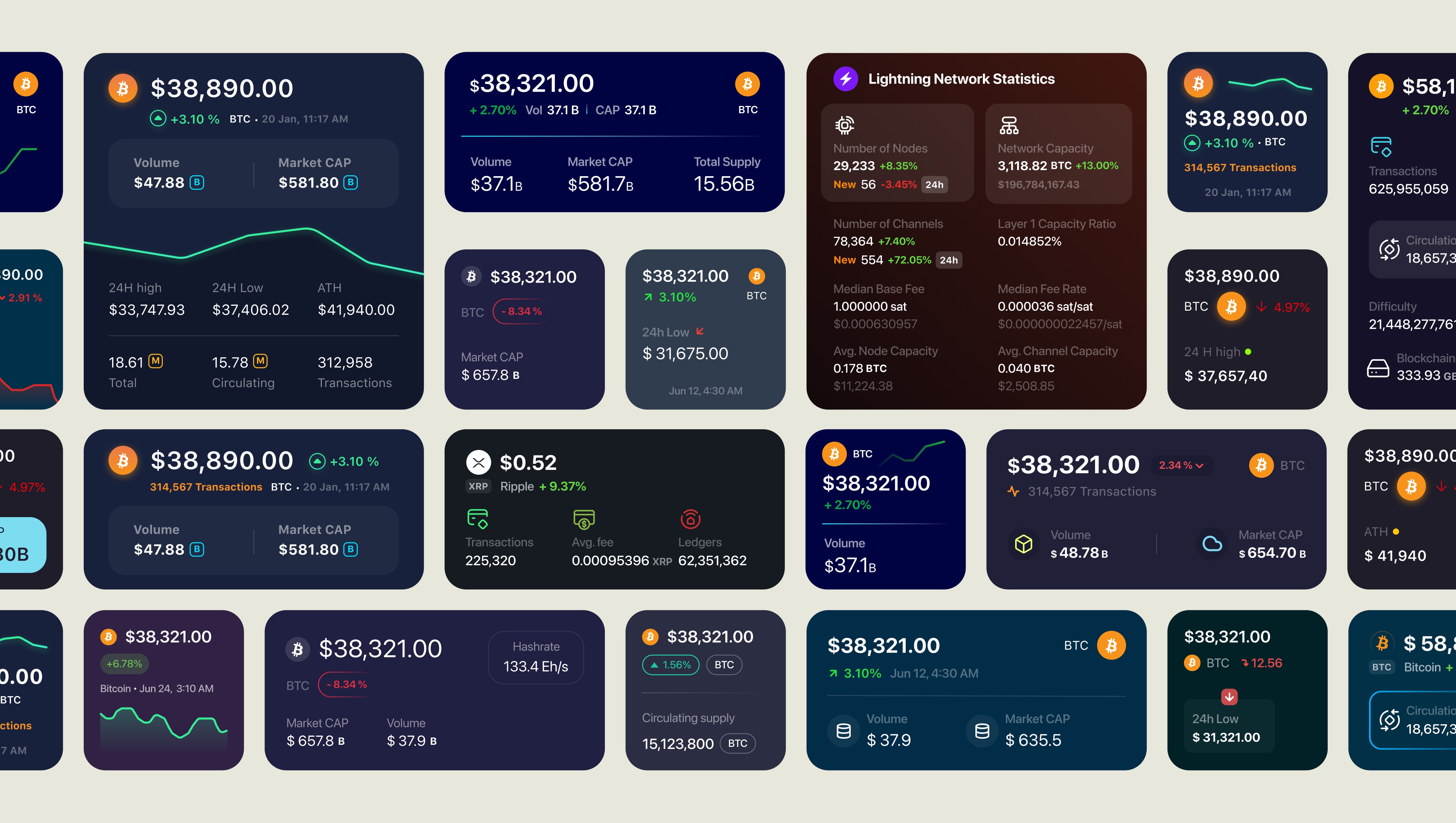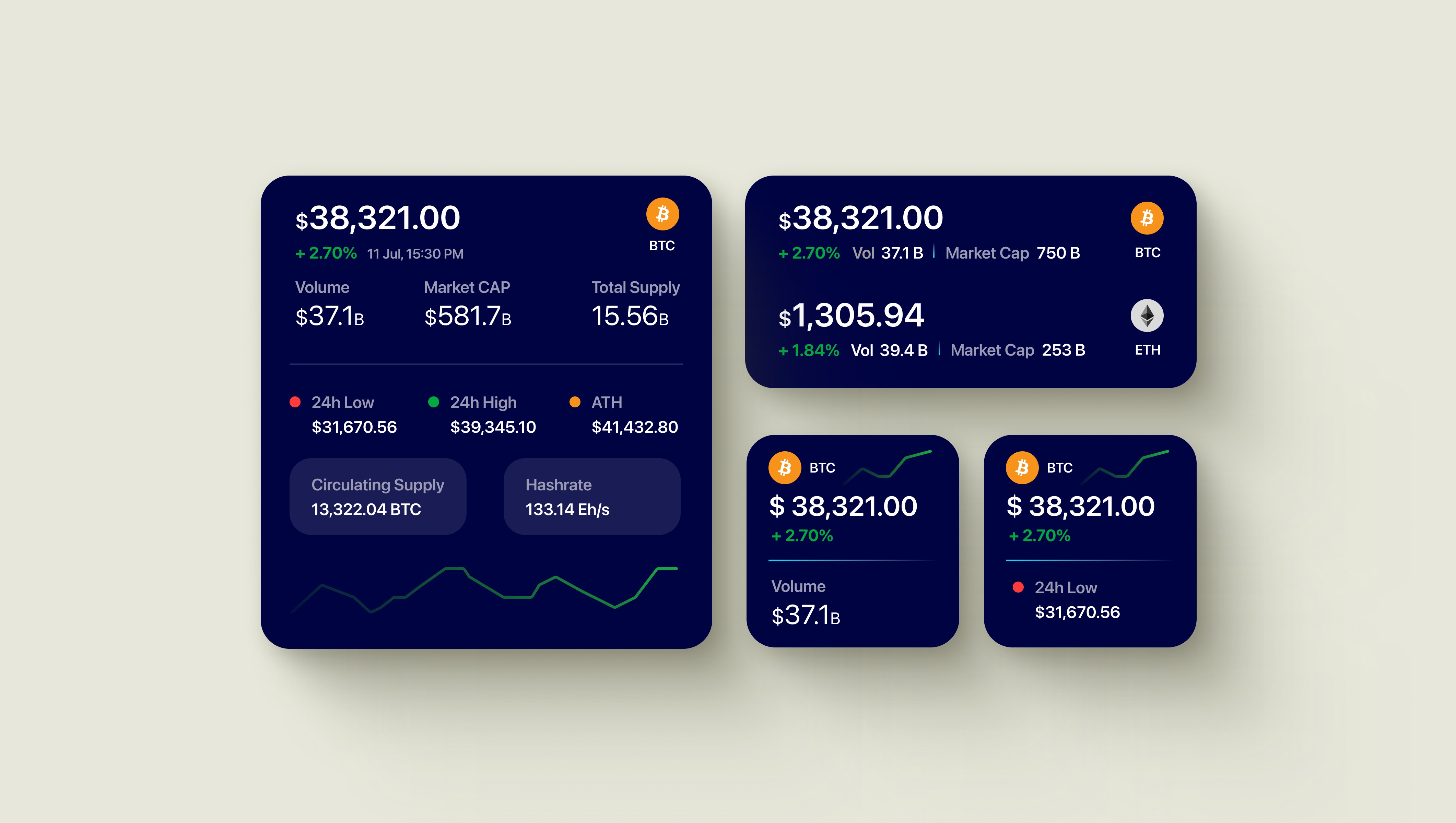 Widgets promised comprehensive crypto analytics on tiny home screen spaces. I needed to display price, percentage change, volume, market cap, and blockchain metrics without overwhelming users or sacrificing readability across three widget sizes.
