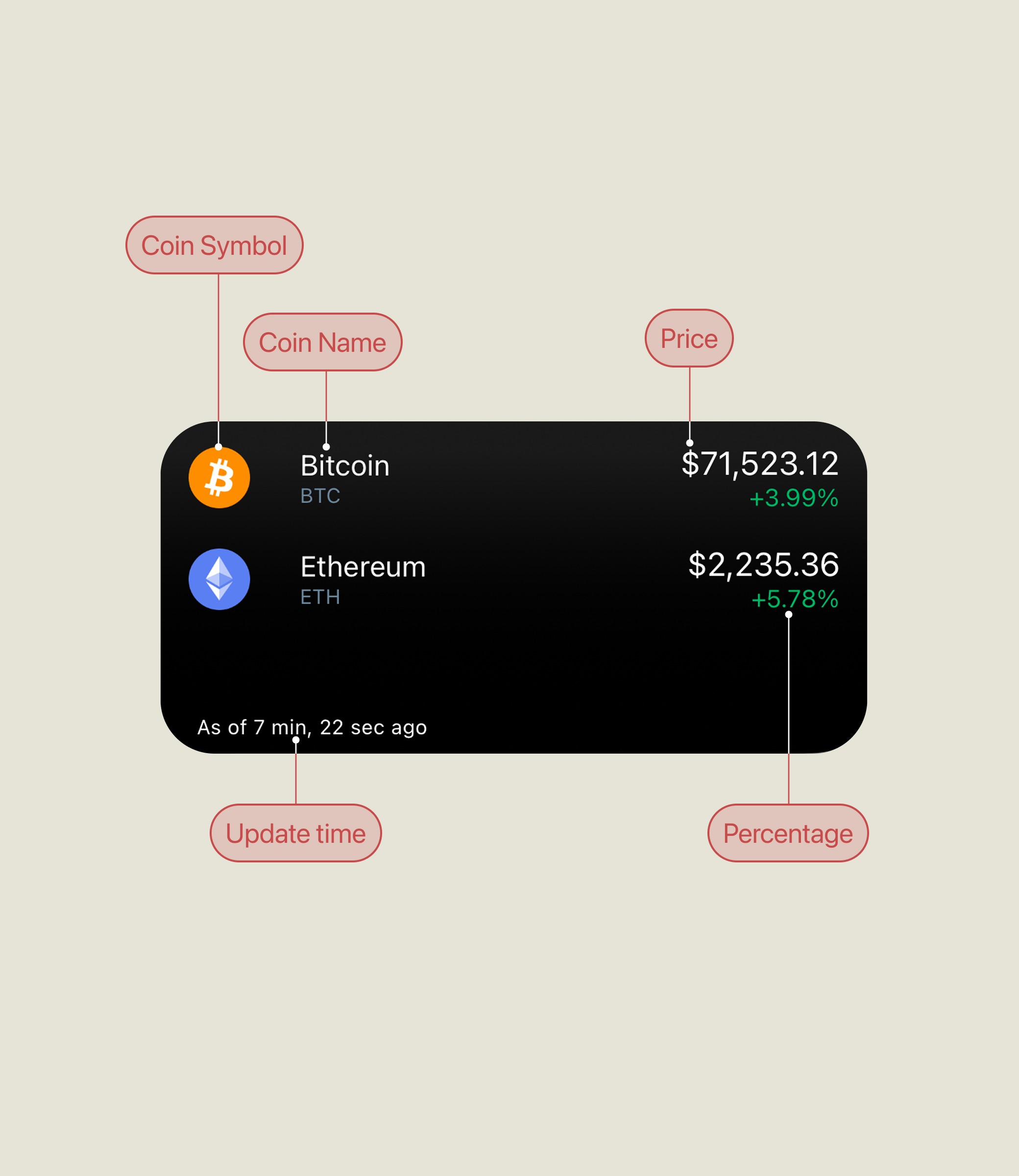 I analyzed widgets from major crypto apps to understand how they displayed price data and identify missing functionality. Most showed only basic price and percentage change. Advanced metrics were absent.