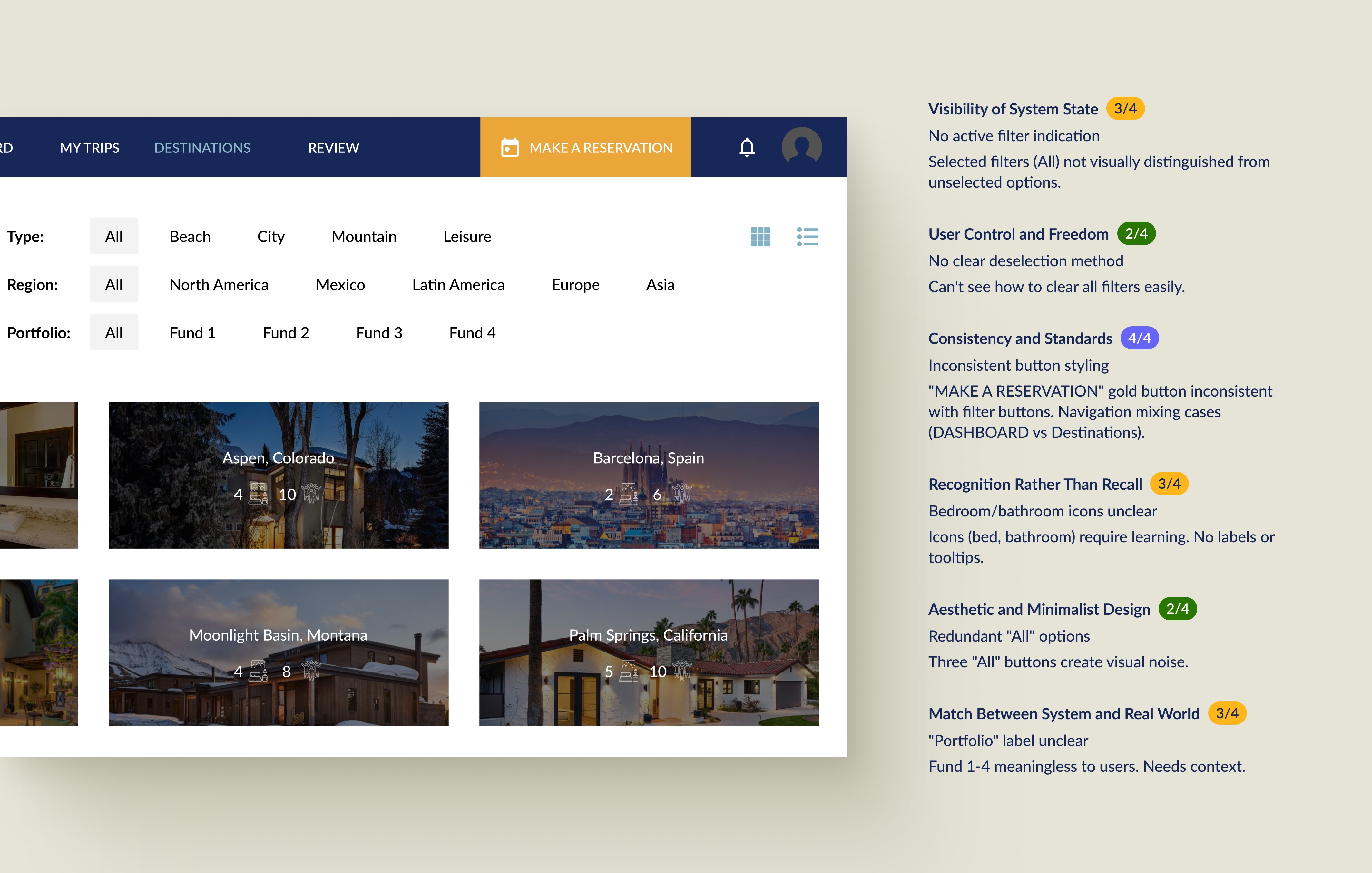 I presented the findings to stakeholders demonstrating why users struggled with the platform. The systematic framework translated subjective complaints into objective violations with measurable severity, building stakeholder buy-in for mobile-first redesign and feature prioritization.