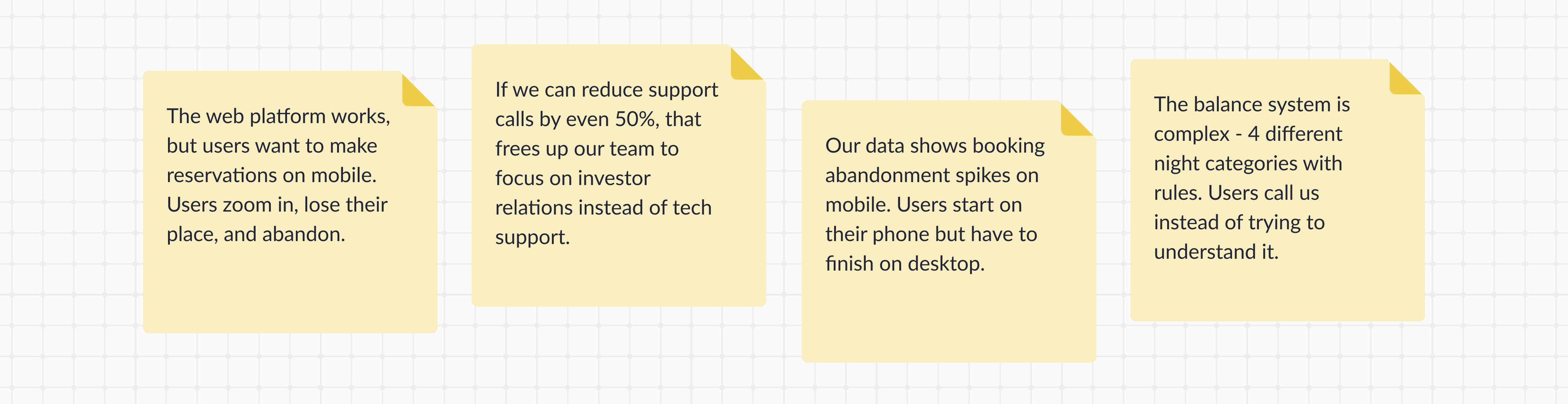 Abandoned bookings and support calls increased operational costs. Account managers coordinated activities and explained balances instead of building investor relationships, creating unsustainable bottlenecks that prevented platform growth.