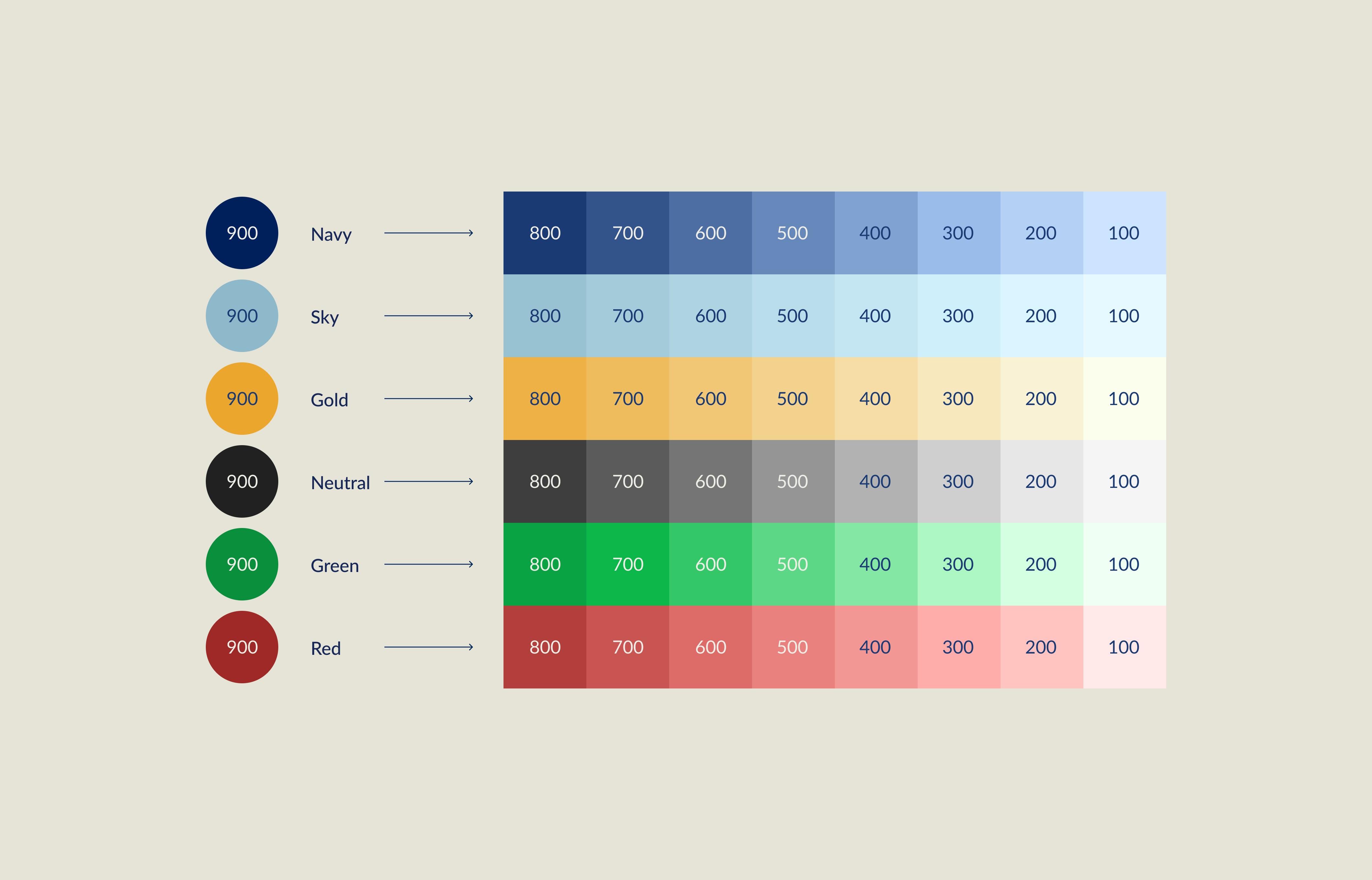 I built Voyager's color system using a structured tint scale (900-100) for each color family, ensuring consistency across iOS and web. Each primary, neutral, and status color includes nine tints from darkest to lightest, allowing me to maintain visual hierarchy and create accessible combinations while ensuring WCAG AA contrast compliance.