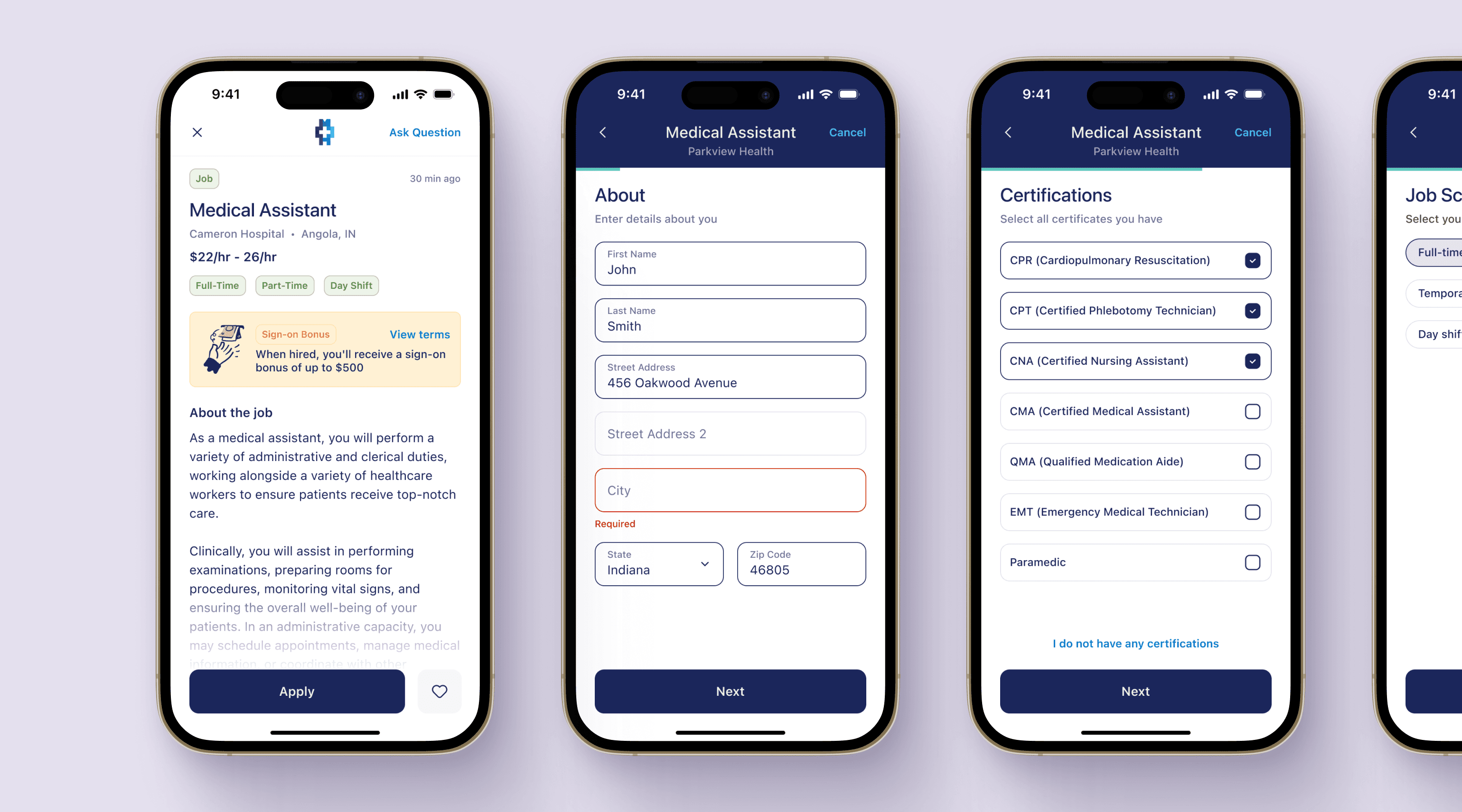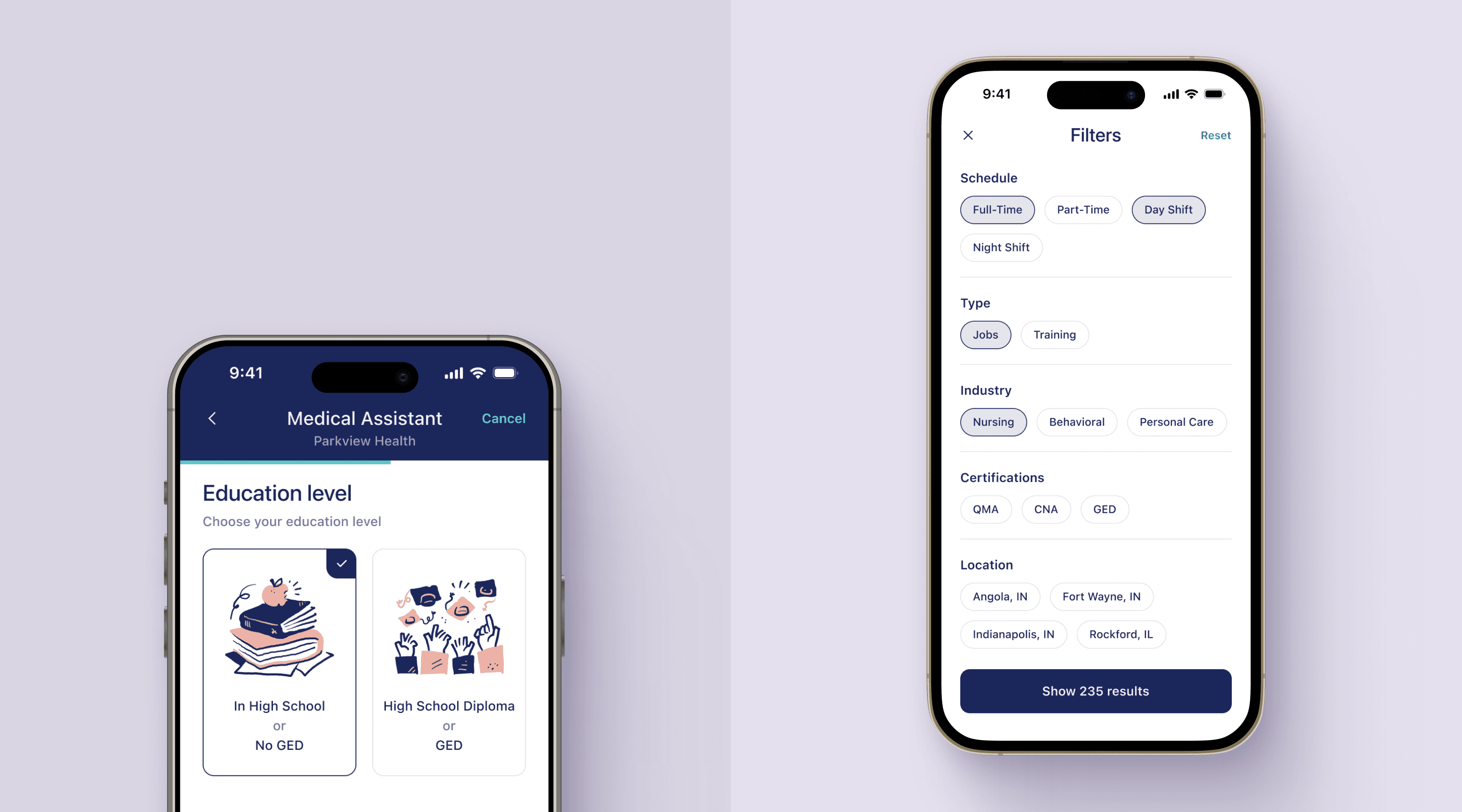 The old app allowed users to view job descriptions but didn’t provide a way to apply, often forcing users to call directly. The challenge was to make searching by location intuitive and allow users to submit applications and sign up for training directly through the app. By streamlining these processes, we turned a confusing experience into a smooth, self-service workflow that saved time for users and employers.